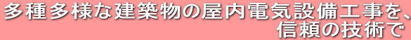 屋内線部門は、さまざまな建築物で数多く屋内線の設計・施工・管理を手がけ、官公庁、建設会社などから高い評価と信頼を得ています。